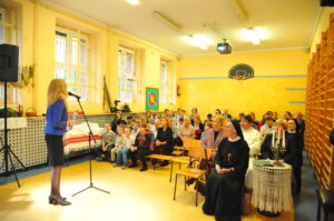 Była to dedykacja dla zaproszonych gości , wszystkich nauczycieli i pracowników oświaty z okazji ich święta. Do życzeń dołączyła także pani Katarzyna Byczkowska, uświetniając akademię swoim śpiewem.