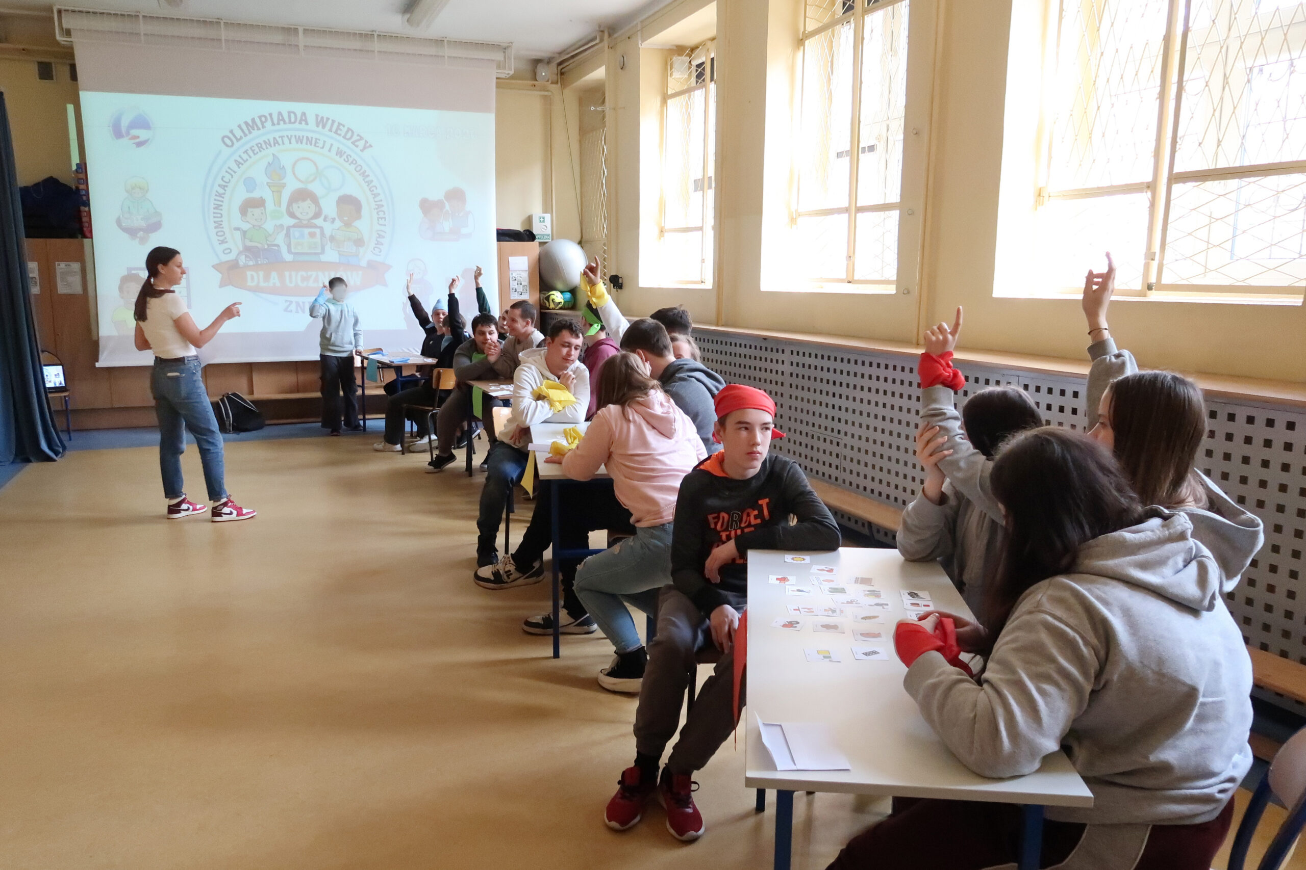 Człowiek potrafi mówić bez końca, a i tak często nikt nikogo nie rozumie. Tymczasem kilka obrazków i symboli potrafi zrobić robotę szybciej niż najdłuższa przemowa. I właśnie to uczniowie sprawdzili podczas finałowej części naszych warsztatów AAC. Dzisiaj odbył się konkurs podsumowujący zdobytą wiedzę. Uczniowie zmierzyli się w kilku konkurencjach związanych z komunikacją alternatywną i wspomagającą. Układali zdania i komunikaty z piktogramów, bez użycia słów pokazywali znaczenie obrazków, odgadywali symbole, a także porządkowali je według odpowiednich kategorii. Nie zabrakło również emocjonującego quizu na platformie Kahoot!, który sprawdził wiedzę uczestników w dynamicznej i bardzo angażującej formie.